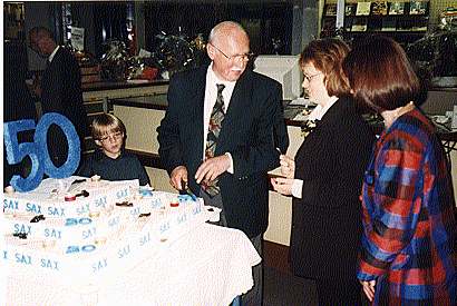 1998 wird die Firma Sax 50 Jahre jung. Ein Zeitraum, in dem immerhin 98 Lehrlinge bei Sax ihre Ausbildung gemacht haben. Sax gilt heute als eines der führenden Handelshäuser für Maschinen, Werkzeuge und Autoteile im ostbayrischen Raum. Dass dies so ist, ist vor allem unseren Kunden und dem engagierten SAX-Team zu verdanken. Ein herzliches Dankeschön. Ein ganzes Wochenende wird gefeiert und mit einem eigens erstellten Katalog und vielen Jubiläumsangeboten unsere Kunden eingeladen.