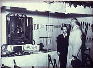 Gründung der Firma SAX Maschinen, Werkzeuge, Industriebedarf durch Herrn Fritz Sax in gemieteten Kellerräumen in der Pesserlstraße in Schwandorf. Das Bild zeigt den damaligen Regierungspräsidenten der Oberpfalz (rechts) zusammen mit dem Firmengründer. Deutlich ist auch der Markenname Gedore zu erkennen. Auch dies hat Tradition bei Sax. Mit vielen Lieferanten verbindet uns eine jahrzehntelange Zusammenarbeit zum Wohle unserer Kunden.